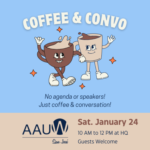 Come to a casual get-together for members and those interested in our programs and interest groups! We will have coffee (and tea) and some early morning goodies. Learn more about our 501(c)3 Community Action Projects, fun and informative events, and actions to advocate for women’s education and pay equity. Ask questions of longtime members, reconnect with members you haven’t seen in awhile and meet new friends. Prospective members are especially welcome!