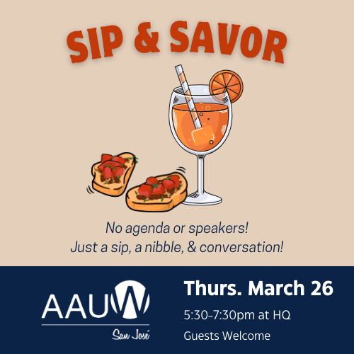 Members and their guests are welcome! We encourage you to bring a friend, relative, or colleague and introduce them to the wonderful AAUW San José community.