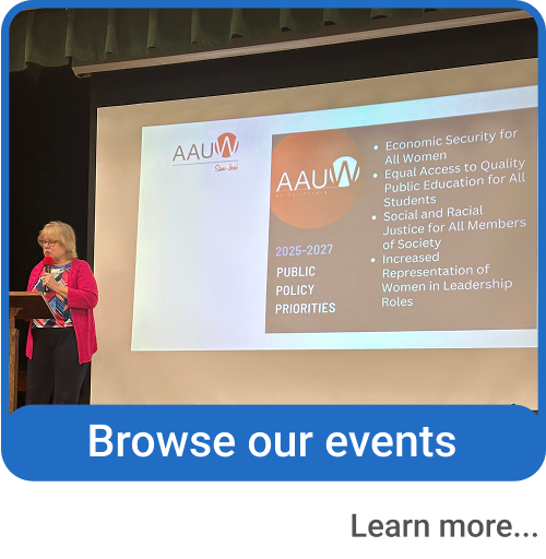AAUW San José is a membership organization focused on advancing gender equity, hands-on community service, and nurturing fellowship and new friendships.